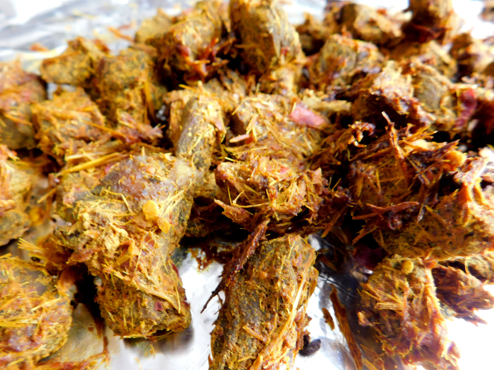 Bước 4: Bây giờ các bạn gắp từng miếng thịt có dính sả, gừng…xếp ra khay có lót giấy kiếng.