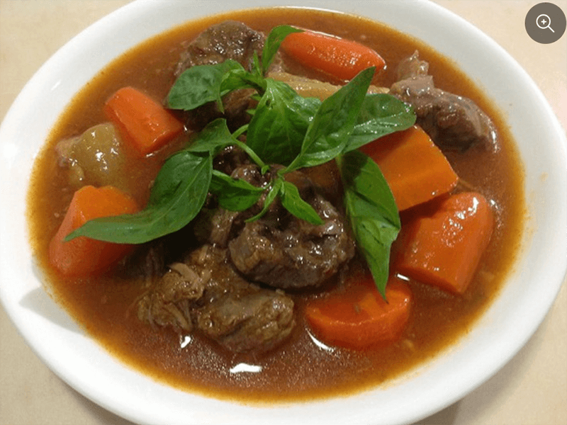 7, Nấu xong, múc bò sốt vang ra bát, bạn sẽ cảm nhận mùi hương thơm nức mũi với thịt bò mềm, khoai tây và cà rốt ăn vừa miệng. Bạn và gia đình có thưởng thức món ăn này với bánh mì, cơm trắng hoặc bún, phở… tùy theo sở thích.