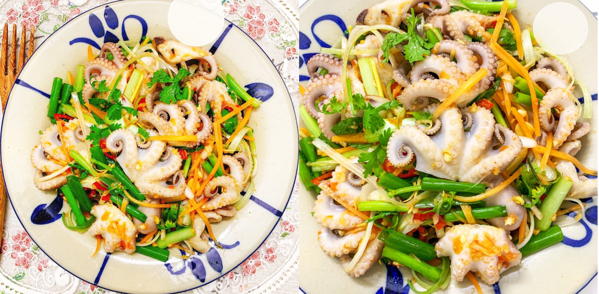 Mọi người có thể cho thêm vài quả cà chua bi cắt đôi, thêm ít miến và ít lạc rang là thành món gỏi miến bạch tuộc giống của Thái Lan đó.