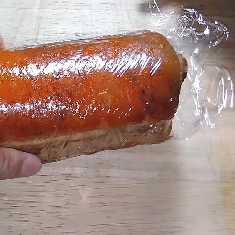 Sau khi thịt chín, bạn để nguội rồi nhẹ nhàng gỡ miếng giấy bạc ra, bọc chặt lại bên ngoài một miếng bọc thực phẩm và cho vào tủ lạnh qua một đêm cho thịt chắc ngon.