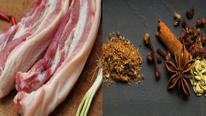 1kg thịt ba rọi làm sạch, khứa vài đường trên thịt để thấm gia vị.