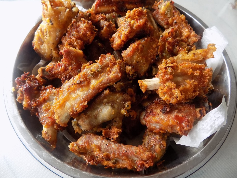 Khi sườn chín vàng giòn thì gắp ra dĩa có lót gìấy thấm dầu.