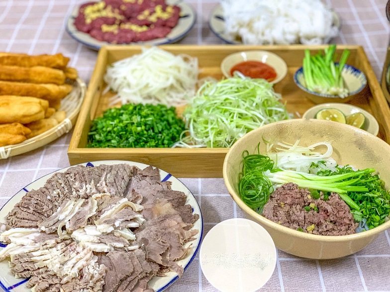 Phần rau ăn kèm thì chỉ có gốc hành trần, hành lá và rau mùi ta thái nhỏ, gốc hành chẻ và hành tây bào mỏng.