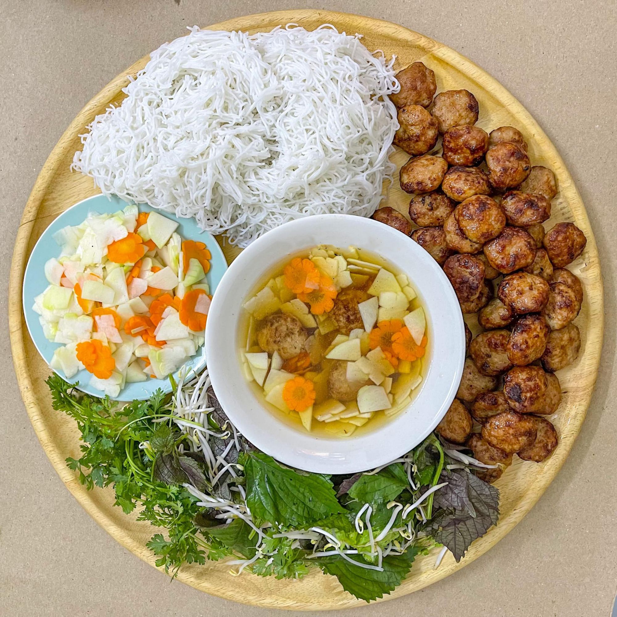 Rau sống ăn kèm: tía tô, mùi ta, húng bạc hà, giá đỗ…