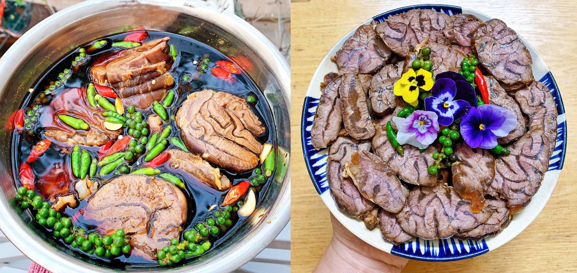 Đun sôi phần hỗn hợp nước ngâm: 700ml nước+ 250 ml xì dầu+ 100gr đường cát vàng+ 100ml giấm ăn+ 1/2 thìa cà phê hạt tiêu bắc giã rối (nếu có tiêu xanh bỏ qua tiêu khô). Có thể nêm nếm lại hỗn hợp ngâm cho vừa miệng hơn. Để thật nguội phần nước ngâm (bước này cũng rất quan trọng, nhớ để nước ngâm thật nguội, nếu không làm đúng các bước món bắp bò ngâm xì dầu sẽ bị nổi váng và hỏng).