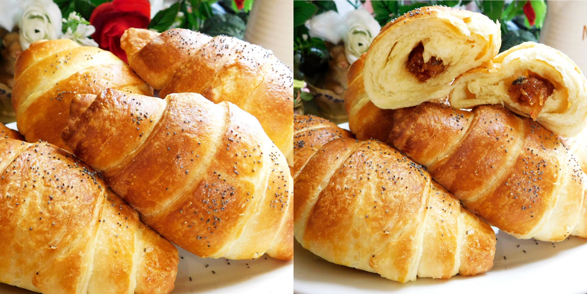 Cán bột thánh 1 miếng to hình chữ nhật có độ dày khoàng 2 mm-2,5 mm. Cắt miếng bột thành những hình tam giác cân. Cho ít nhâm mứt hoặc chocolate (nếu thích) vào phần đầu cạnh to cuộn từ từ lại tạo thành cái bánh sừng trâu.
