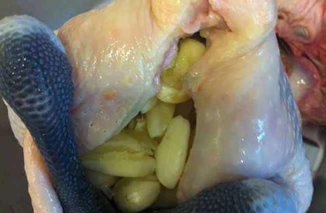 Dùng lượng tỏi thích hợp tùy thuộc vào kích thước bụng gà.