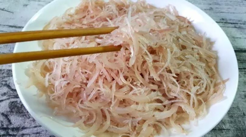 Bì (da) lợn mua về hãy đảm bảo đã sơ chế sạch lông, bạn bóp kỹ chúng với muối rồi rửa sạch, chần qua nước sôi, rồi cạo sạch lớp mỡ bám. Sau đó luộc chín, để nguội và thái chỉ thật mảnh (càng mỏng càng tốt).