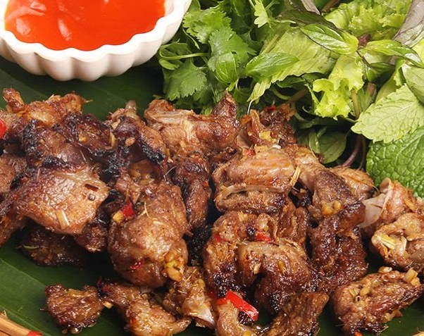 Nướng mắm, mắm tôm, đường, dầu ăn, chanh, ớt, rau quế, hành lá