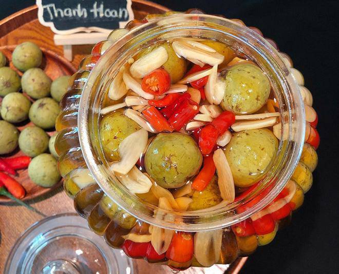 Đợi nóng già đổ tỏi và ớt vào mục đích diệt khuẩn, tiệt trùng khi ngâm sấu để cả năm không bị nổi váng.