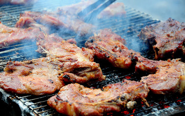 Thịt nướng xong, cần dùng kéo cắt bỏ phần thịt cháy xung quanh để không bị đắng.